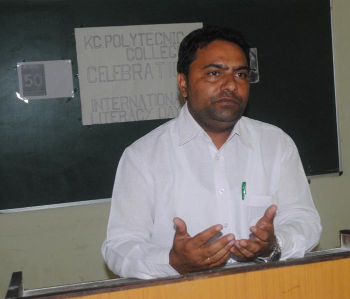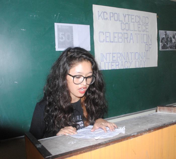 In KC Polytechnic College "International Literacy Day " was celebrated on 8/9/2016, in which students and staff members told that Literacy is an essential need for everyone. Initially polytechnic college student Padma Lamo sang a song for welcome. After that student Sonam Angmo said that "The meaning of literacy is not only Education, although the meaning of education is to develop the society with great honor.