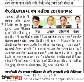 KC INSTITUTE OF HOTEL MANAGEMENT & CATERING TECHNOLOGY