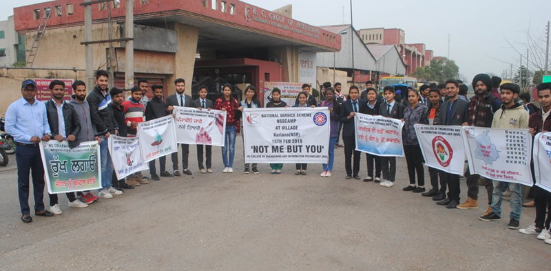 NSS camp was organized by KC College of engineering & IT in Village Karanana Dist NSR on 15 Feb 2019. About 50 NSS Volunteers from college attended the camp.