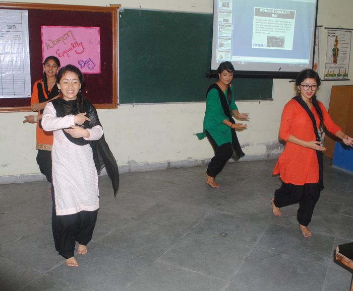 Woaman's Equality Day was celebrated on 26th August 2016 (Friday) in K.C Polytechnic College under the guidance of the Chairman of K.C Group Mr. Prem Pal Gandhi of K.C Group of Institutions. On the day in the Seminar Principal Rajinder Moom told the Students that every woman has equal rights against men. CSE Department Students also shared their views on this day. In the beginning of this day students of CSE 5th Sem Manju and Madhubala shared their views on 26th August 2016. And then Gurpreet Student of CSE Deprtament perform song on "Dhian da Satkar Karo..". After, Ladhakhi girls perform Dance on the "Punjabi Gaint Jatti". Dean Academics cum HOD CSE Er. Gurnawab Singh, H.O.D ME (Er. Parwinder Kumar), HOD AE(Er. N.K Soni), HOD ECE & EE (Er. Harpreet Kaur), HOD CVE (Er. Kulwinder Singh) and all the Students of CSE and Applied Science Department were present.